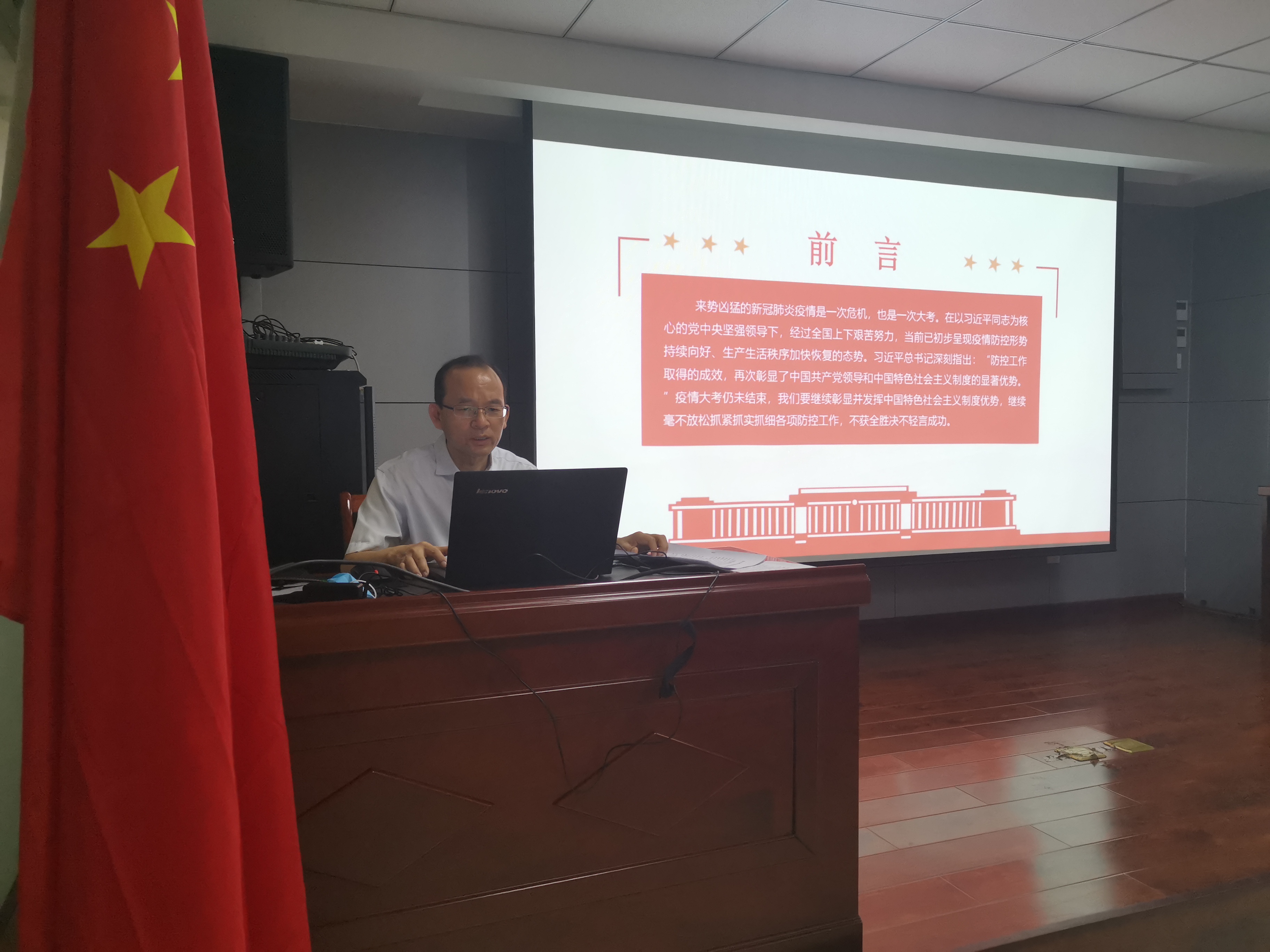 2020年7月2日上午,中共承德市國(guó)控投資集團(tuán)有限責(zé)任公司第二支部委員會(huì)支部書記焦俊良同志以“在大考中彰顯中國(guó)特色社會(huì)主義制度優(yōu)勢(shì)”為題,為全體支部黨員和入黨積極分子上了一堂別開生面的黨課。