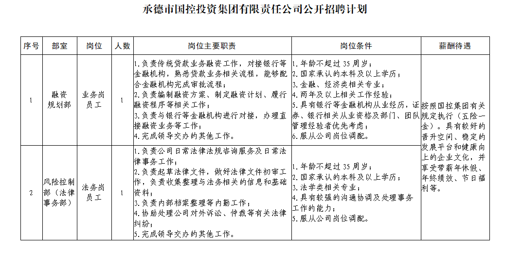 具體應(yīng)聘條件見《承德市國控投資集團(tuán)有限責(zé)任公司公開招聘計劃》。