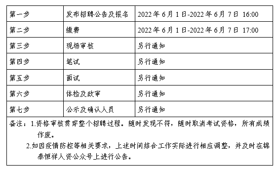 (二)體檢時間、地點及注意事項在“錦泰恒祥人資公眾號”進行通知。